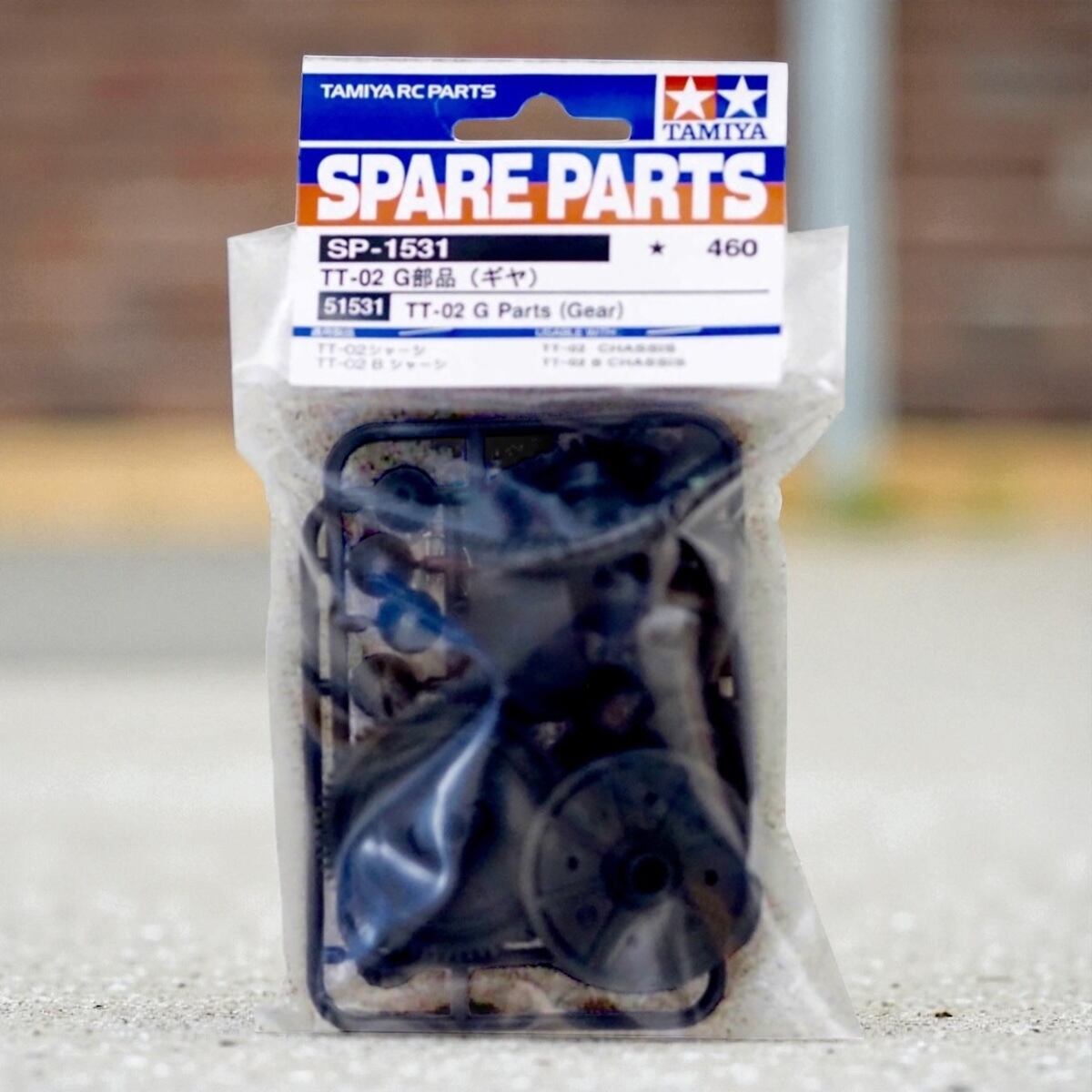 タミヤRCカー、TT-02シャーシ用のスペアパーツです。消耗しやすいギヤ部品は早めの交換がおすすめです。